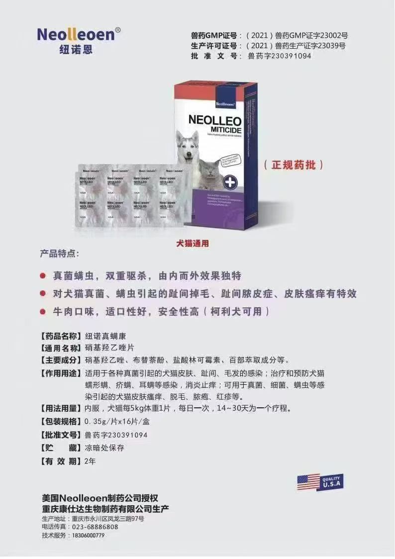1.可深度杀灭宠物真皮的螨虫和真菌,由内而外,杀螨杀菌效果显著,一药双效,目前市面上同类型产品少,都是单一除螨或杀菌的。